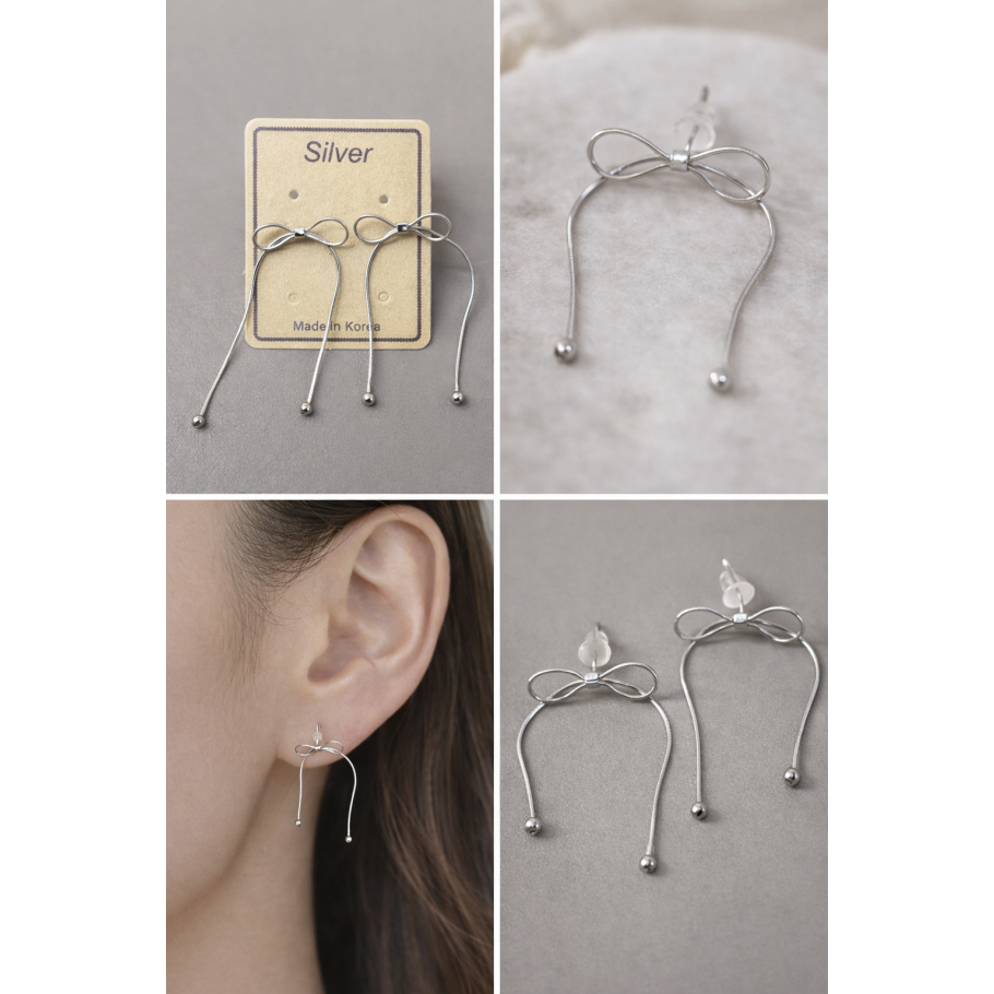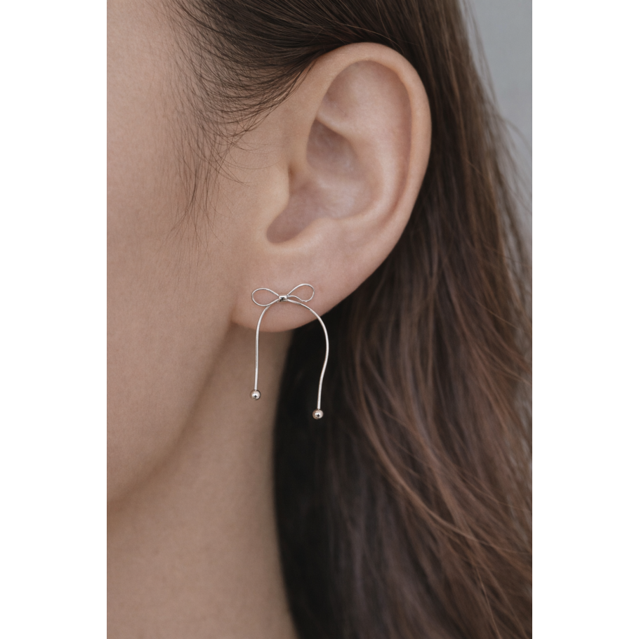 銀緞蝴蝶結垂墜耳環