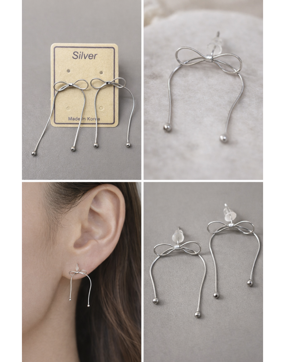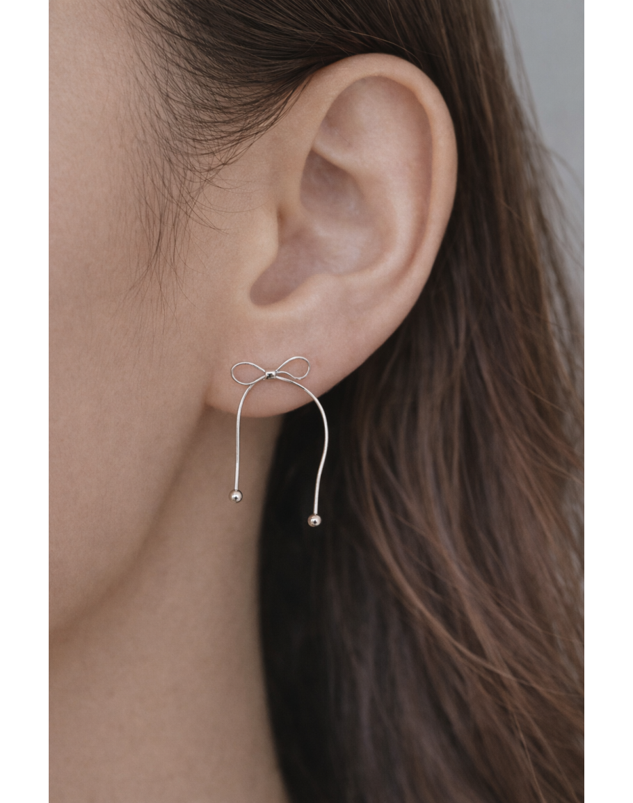 銀緞蝴蝶結垂墜耳環