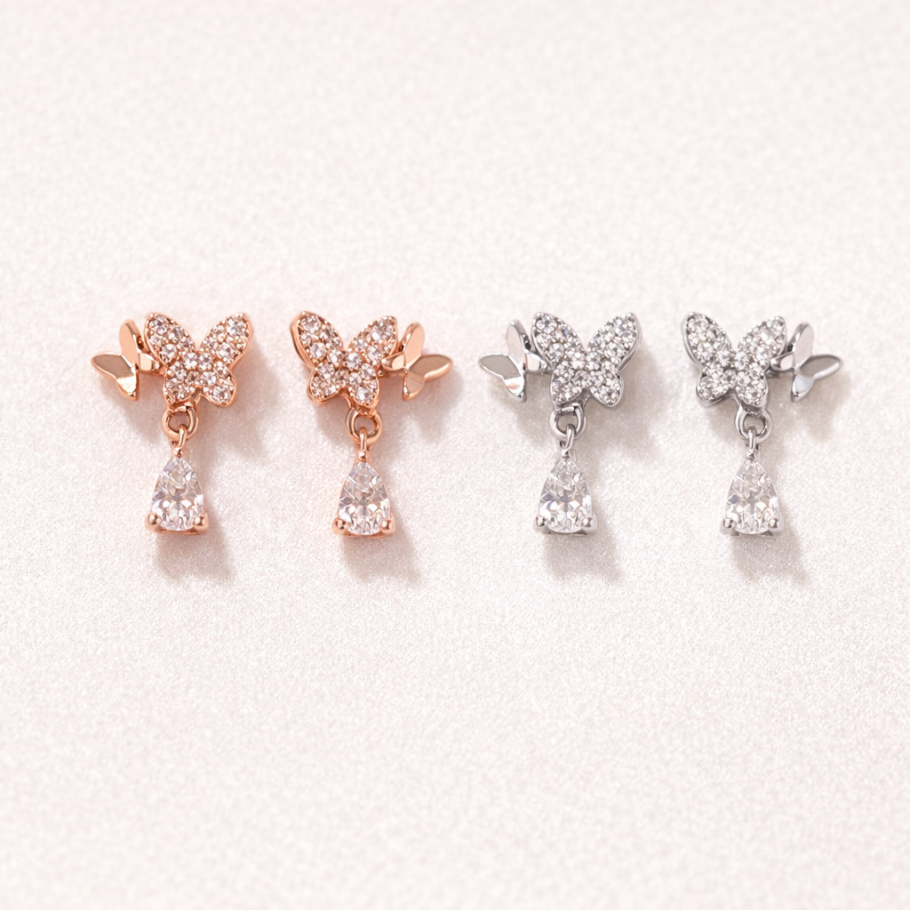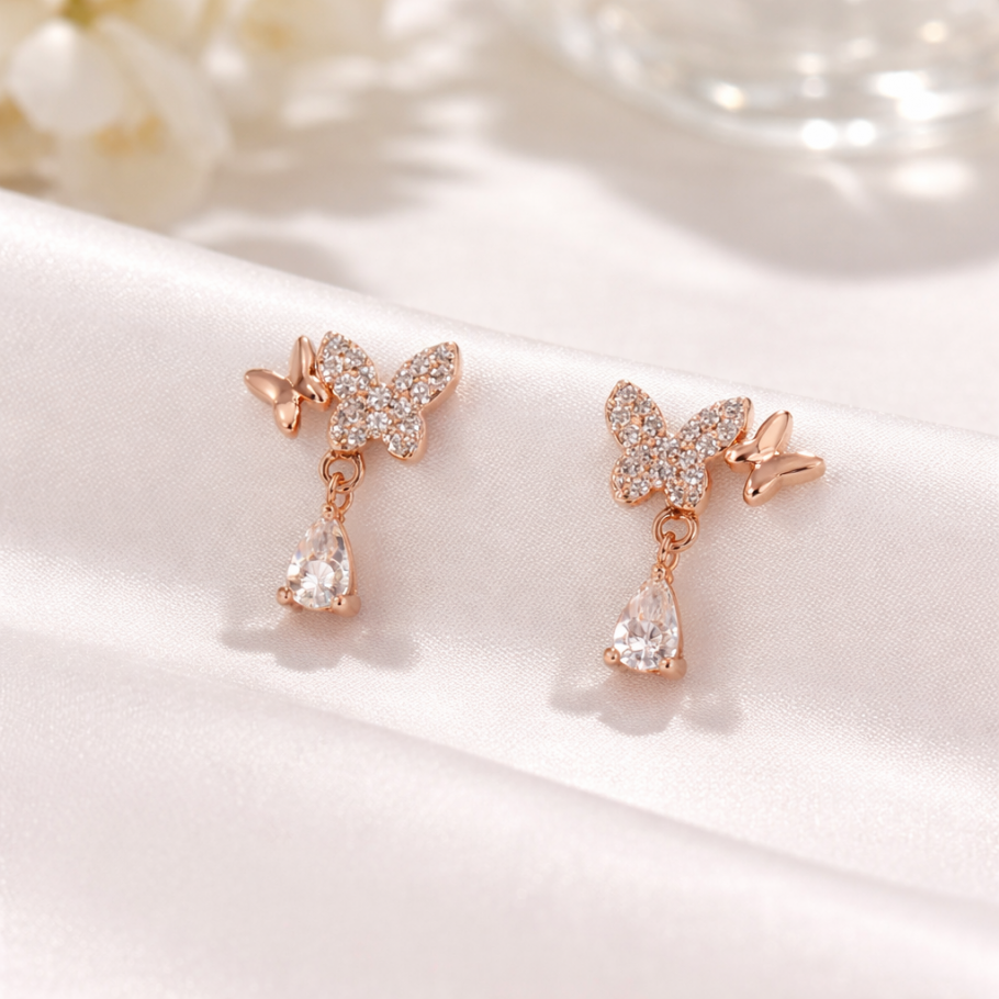 Rose Gold Butterfly Stud Drop Earrings